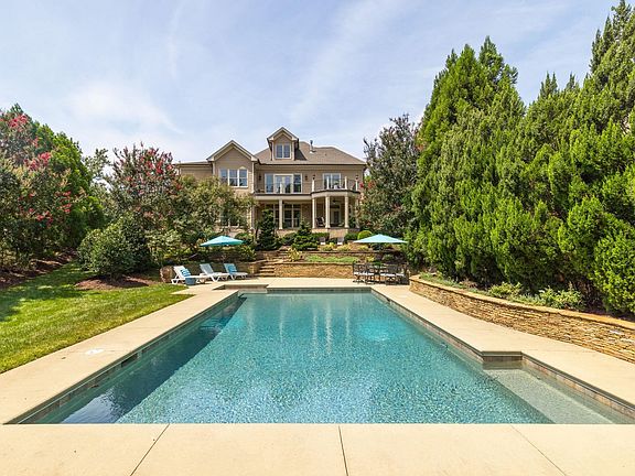 Nestled within the prestigious Copperleaf neighborhood, this Homes by Dickerson custom estate home is a stunning example of tasteful elegance. Boasting over 5,200 sq ft, with an open, thoughtful floor plan, this home features a formal dining room and study, large family room open to a gourmet kitchen, first floor guest suite, 5 bedrooms, each with attached bath, bonus room with wet bar, and third floor rec room. Gorgeous hardwoods flow throughout both the first and second floor while the dream kitchen includes 6 burner dual fuel stove, convection microwave, warming drawer, beverage refrigerator, and a generously sized island. The luxurious owner's suite boasts an expansive closet with custom shelving and sitting area with french doors to the upper deck. The centerpiece of outdoor living is the 18x36 heated and cooled saltwater gunite pool. Relax on the dual porches or entertain on the stone terrace with fire pit. Neighborhood greenway trail connects to the American Tobacco Trail for even more outdoor recreation! Close to RDU, RTP, new Apple campus!