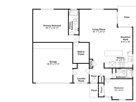 Home Features and Amenities: Air Conditioning, Breakfast Nook, Fenced Yard, Garage, Kitchen Island, Long Lease Terms, Open Floorplan, Patio, Pet Friendly, Primary Bedroom on Main, Recessed Lighting, Single Story House, Smart Home, Tile, Walk in Closet, W/D Hookups, and professionally managed by Invitation Homes.