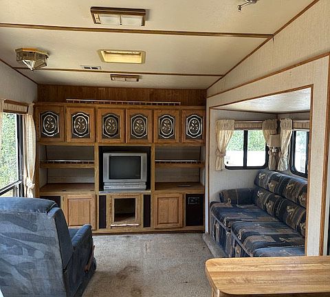 This is NOT a house. This is a 39' 5th wheel with 3 pop-outs, living room, kitchen (stove, microwave, refrigerator, bathroom with shower, AC & heat, run on electric and propane. The 5th wheel is located inside Sunrise Mobile Home Park, a smaller mobile home park with families. The 5th wheel is $8000 and to remain inside the mobile home park permanently. Space rent is $800/month + you pay PGE. It is not perfect but it is in good shape and awaiting you to make it. your home. Owner pays water and sewer, Tenant pays PGE