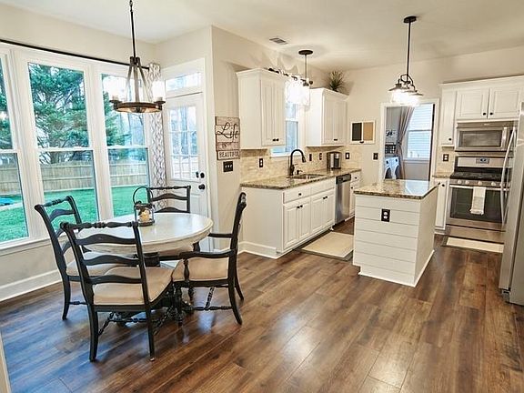 - Kitchen Features: Eat-in Kitchen, Pantry, View to Family Room, Stone Counters, Kitchen Island, Breakfast Room, Cabinets White
