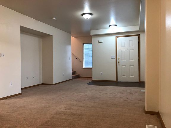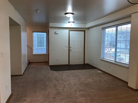 FREE JANUARY 2020 RENT!! This spacious, modern townhome has 3 bedrooms, 1.5 baths and is located on a quiet street in a nice neighborhood. You can't beat its convenient location which is close to JBER, Tikahtnu Commons and Downtown. The townhouse design means you can enjoy peace and quiet with no one living above or below you. The unit is over 1,200 sf plus a 500 sf garage!! The gourmet kitchen includes many upgrades like: Built in Microwave over the Range = more counter space Garbage Disposal & Dishwasher Large Refrigerator Sunny window over kitchen sink Breakfast bar Multiple lazy susans Pantry storage in addition to acres of cabinet space All three bedrooms are located on one floor. The master bedroom has a walk-in closet and private access to the full bathroom. No need to walk through the hallway to take a shower! The master bedroom also has vaulted ceilings. The living room was thoughtfully laid out with an entertainment nook prewired with a cable hook up and outlets that help keep your living space clutter free and inviting. A large South facing window floods the main living area with natural light. The unit comes equipped with a washer and a dryer. There is an over-sized 2-car garage with a spacious storage closet. The garage is large enough to accommodate most pick up trucks. The unit has its own water heater and furnace, so you don't have to share with other tenants. Owner pays for water, sewer, trash, landscaping and snow removal. Tenant pays for gas and electric.