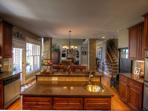 - Kitchen Features: Breakfast Bar, Cabinets Stain, Breakfast Room, Stone Counters, View to Family Room, Kitchen Island, Pantry Walk-in