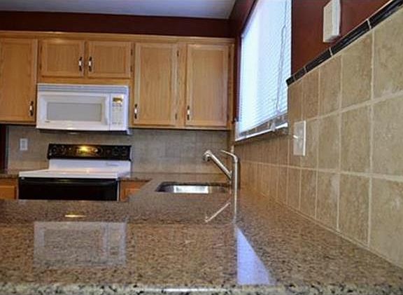 Granite counter tops, newer sink and faucet, and refinished wood floors in kit/dining, newer frieze carpet. Backs to trees and gorgeous lake view. Spacious great room with elegant fireplace overlooking large entertaining area on the back deck. Three bedrooms upstairs. Large master suite with walk-in closet and bathroom. Basement has a perfect media room space that could be used as another bedroom area. Plenty of storage space in this home and two car garage. Cute courtyard area between the garage and home
