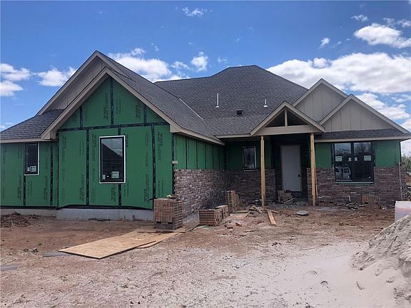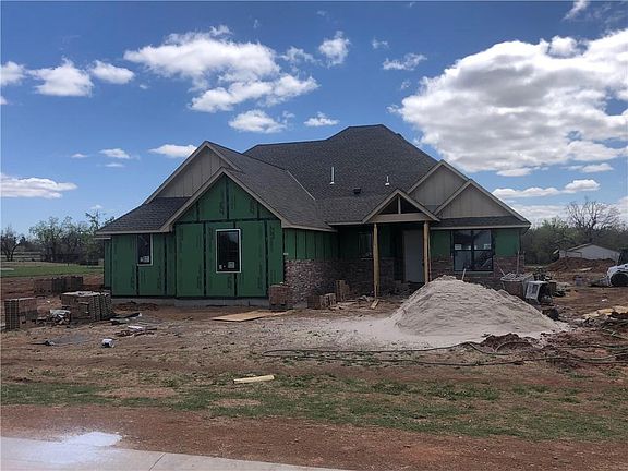Welcome to Oakmonte addition, where you discover ample room to retreat, play & prosper on your new North Edmond acreage in the Edmond schools district. This home is a lovely blend of natural and transitional features, with gorgeous natural cedar beams and wood-look tile floors complementing the fresh modern accents and fixtures. A sunny, open kitchen club area plus an additional first floor gameroom give this home a spacious and functional flow. This versatile floor plan with 4 beds or 3 beds w/study and 3 full baths, all on one level provides many living and entertaining options. From the inviting front porch and spacious covered back patio for gathering to the 3-car side load garage with interior access to all bays, this home boasts many custom features. A thoughtfully designed laundry room w/master closet access, laundry center, and designated space for frig or freezer simplify home management. Sprinkler system included. Estimated completion first of June.