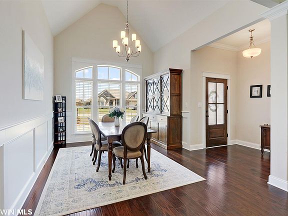 Gold fortified Truland home in the desirable Stonegate Estates! This gated community is loaded with amenities - clubhouse, outdoor pool, tennis/basketball courts, and an exercise room. Stonegate Estates is in the Gulf Shores school district and is minutes from the white sandy beaches. This open floor plan is beautiful! Engineered hardwood floors, crown molding, and granite throughout. The formal dining area has a vaulted ceiling and wainscoting, which really adds a wow factor! The kitchen is equipped with stainless appliances, to include a gas range, and a walk in pantry with custom shelving. The living area is spacious and features a brick fireplace that is definitely the focal point of the space. Master is equipped with an upgraded frameless shower with a corner seat and rain can, garden tub, and 2 walk in closets! Home is situated on an exterior lot, so you can sit on the covered back patio and enjoy the peaceful backyard setting.