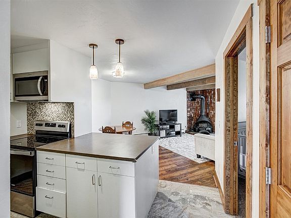 Enjoy absolutely stunning views from this beautiful, modern condo in the heart of Summit County!! The spectacular landscapes of the surrounding Mountains soaring above Lake Dillon are truly breathtaking. You can see all the way to Keystone Resort! This condo has been lovingly cared for with recent updates throughout, including brand new stainless steel appliances, luxury vinyl plank flooring, freshly painted walls, stained trim, new lighting fixtures and ceiling fans just to name a few. The laundry room with your own washer/dryer is a huge bonus, and also offers plenty of storage for your gear. No mountain home is complete without a wood burning fireplace! This is a must see to appreciate the spectacular views, and Silver Queen West is a gem in the Wildernest neighborhood. Balanced with a well run HOA which offers reasonable dues that include all utilities except electric. Seasonal and monthly rentals are allowed here. Mostly furnished/turnkey and ready for you to make your home here in the Mountains!!