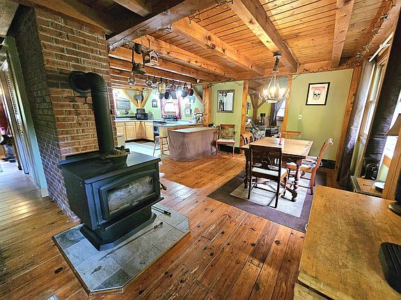Privacy abounds at this beautiful timber-framed home on over 6 ACRES OF LAND! Cathedral ceilings and wood flooring are just some of what this country home has to offer. Full bath and bedroom on 1st floor for convenience and many updates in the last few years. Outbuildings for all of your projects like woodworking, gardening, and so much more. Quick close possible!