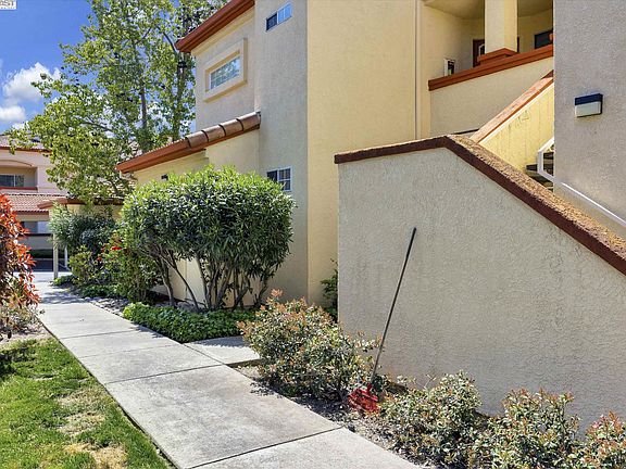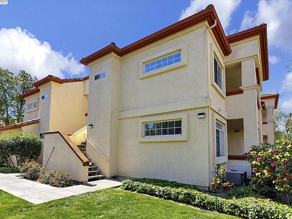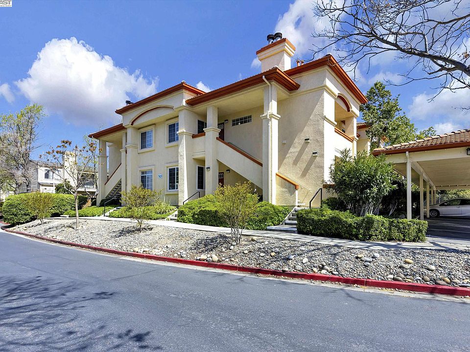 Alamo Creek Villas Beauty! Light and bright upstairs end unit. Beautifully appointed kitchen features natural stone counter tops and stainless-steel appliances. Open dining area opens through to kitchen for easy access. Vaulted ceilings, fireplace, indoor laundry room with plenty of storage, and a large patio. Great location, close to Iron Horse Trail, parks, dog park, schools, shopping, 580 and 680 freeway access. HOA includes water, trash, two pools, tennis court, club house and gym.