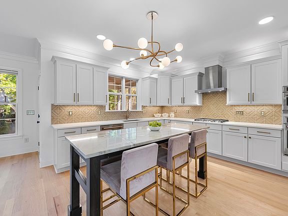 Stunning Former Parade Home in Desirable West Cary Cul-de-Sac! This beautifully refreshed home features refinished hardwood floors throughout the main living areas, including a versatile first-floor bedroom with a full bath. Enjoy abundant natural light in the dining and family rooms, and revel in the reimagined kitchen that boasts modern quartz countertops and stainless steel appliances. The luxurious primary suite boasts a spacious bath with dual sinks, a separate soaking tub, and a walk-in shower, along with an expansive walk-in closet equipped with custom built-ins. Each of the three additional bedrooms also features walk-in closets for ample storage. Ascend to the finished third floor, where you'll find a second expansive bonus room complete with a mini bar and bathroom—perfect for game nights or hosting guests. Outside, enjoy the tranquility of the screened porch and paver patio, ideal for relaxing after a day of biking along the friendly sidewalks of Highcroft Village or unwinding at the neighborhood pool. Don't miss the opportunity to call this remarkable home yours!