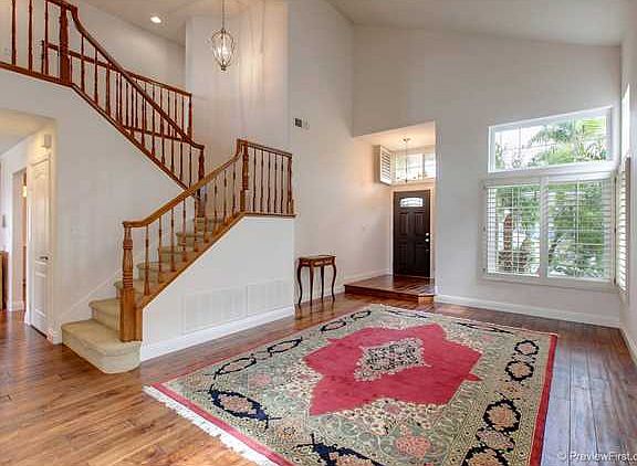 Nestled in the hills above La Costa Resort, is this beautiful ocean and lagoon view home in Alga Hills. This inviting 2 Story, 3 bedroom + office, 2.5 bath home has a lot of custom features, starting with an open vaulted ceiling entrance, bright with natural sunlight, gleaming scallop wood floors, freshly painted interior, updated windows and screens, plantation shutters and privacy blinds. New air conditioner and water heater, brand new rear fence, front door, light fixtures and chandeliers.