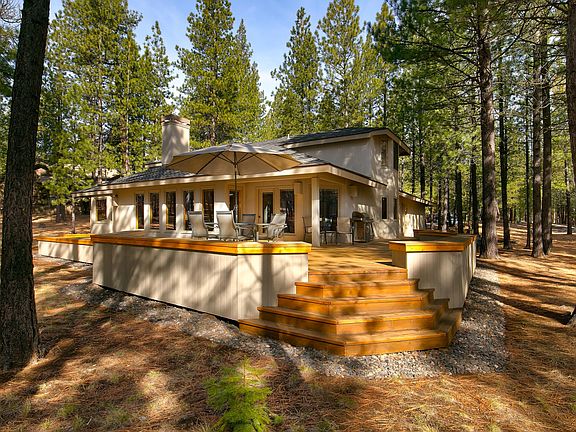 First time on the market! This delightful home in upper Glaze Meadow of Black Butte Ranch is situated on a generous 0.75-acre lot. New homeowners will enjoy the expansive wood deck, offering serene views of the wooded common space and peekaboo views of the 13th fairway. The inviting kitchen seamlessly flows into the eating area and great room, featuring vaulted ceilings and a cozy wood-burning fireplace. The first floor also boasts a primary suite equipped with a jetted soaking tub and walk-in shower for ultimate relaxation. Upstairs, you'll find two additional bedrooms and a full bathroom. Enjoy easy access to the Upper Glaze Meadow Pool & Tennis/Pickleball courts. GM 402 is being sold completely furnished and turn-key. Experience the perfect blend of comfort and outdoor living in this remarkable property!