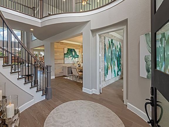 The Siena features a breathtaking rotunda foyer with a sweeping circular staircase. A warm and inviting study is just off the foyer. The bright and spacious family room has two story ceilings and windows overlooking the outdoor living area. The family room seamlessly connects to the gourmet kitchen with tall custom cabinets, extensive countertops and walk-in pantry. The charming breakfast room is complimented by large bay windows overlooking the outdoors. Relax and rejuvenate in the spa-like owner's bath and private owner's suite. A privately located guest suite is also on the first floor. Follow the spiral staircase to the gameroom, two spacious bedrooms, and two baths upstairs. Customize this design by adding an additional fifth bedroom with full bath, media room, and more.