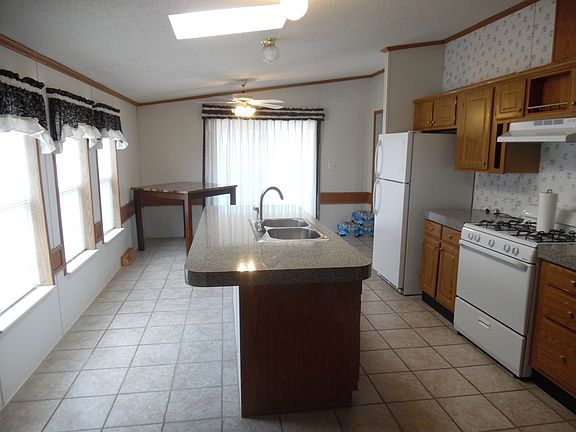 This large home is on a corner lot that offers a 2 car garage. Enjoy the outdoors sitting under your covered porch that spans one side of your home. This home also has a large ramp for easy access. Inside the home you will notice the large living room that flows into the bright island eat in kitchen. All 3 bedrooms are spacious and have walk-in closets. The master bedroom has its own private master bathroom that offers both a garden tub and a stand up shower. Give Sun Homes at Carrington Pointe a call today to schedule your personal showing at 888-414-8384