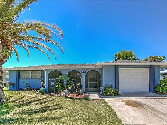 3 bed, 2 bath home with a one car oversized garage located directly across the street from Lake Lisa Park with playground, basketball courts, picnic tables, etc. Large bonus room has been converted to actual living space, INCREASING YOUR LIVING SPACE FROM 1298 to 1621 SF! Split bedroom plan, and all appliances stay for new owner. Laminate and tile throughout (no carpet). Open covered porch in rear of yard that is fully fenced. And screened, covered porch at front entrance to home as well. "X" flood zone, so no flood insurance requirement. Homeowners insurance policy is under $700 annual. And no HOA! Can lease immediately, so investors are welcome! Home warranty with acceptable offer for buyers peace of mind during first year of home ownership. Roof is from 2008. Pasco County records show "UNKNOWN REPAIR" sinkhole status. Priced accordingly. Ask your agent for the report attached to the listing. CASH ONLY buyers, please. Buyer to verify room measurements.
