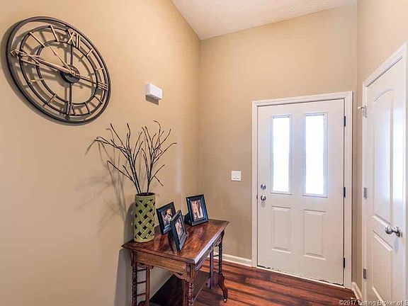 Welcome home to this beautiful move in ready 4 bedroom, 2 bath walk-out ranch in Rainelle Woods with easy access to I64. This home features an open floor plan with faulted ceilings. The kitchen features granite counters, breakfast bar & stainless appliances. Laminate floors in 1st floor living space, carpeted bedrooms & tiled bathroom floors. Large deck opens up to the .56 acre lot that extends to the woods behind the beautiful fencing. Master bedroom w/attached bath, double vanities & walk-in closet. Bonus utility garage for your lawn equipment along with a large 2 car garage. The lower level walkout w/patio includes finished entertaining space, 4th bedroom w/2 full windows & rough in for 3rd full-bath. There is lots of extra storage and room to finish more of the lower level if desired. New Albany-Floyd County Schools. 2-10 Home Warranty being provided by sellers.