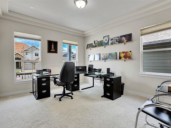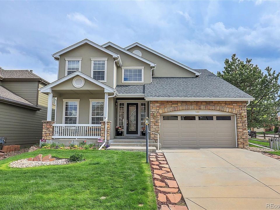 Welcome to 7026 South Garrison Street, your dream home in Hillside at Stony Creek! With 4,275 total sqft, 3 bedrooms, 4 full bathrooms and a three-car tandem garage, this home offers impressive space in an ideal Littleton location. Pristine curb appeal welcomes you with accents of cut stone and flagstone on a serene corner lot. Soaring ceilings, a grand staircase, and an airy office set behind French doors greet you in the generous foyer. Tray ceilings, charming arches and light hardwood floors throughout bring an elegant and elevated feel to the home. The living room features a stone-clad fireplace set on a backdrop of greenery views from many bright windows, the perfect space for cozy evenings with family and friends. An entertainer's dream, the open living space leads to an enviable eat-in area cloaked in windows, with convenient sliding glass door access to the spacious deck. Whip up a meal in the impressive kitchen, featuring maple cabinetry, a glass cooktop, double ovens, tasteful subway tile backsplash, granite countertops and an eat-in bar. Host a holiday meal in the formal dining room, set amidst statement archways and a stunning bay window. The primary suite is a showstopper with generous floorspace, loads of natural light, access to a private deck, charming built-ins, a double-sided fireplace and a sensational attached den perfect for an office or private living space. Bright and airy, the primary 5-piece bath features a soaking tub and stand-up glass shower. The home's hidden gem is the unfinished basement, waiting for your personal touch to create your dream family room, game room, or studio space! Outside you'll find a spacious deck, perfect for soaking up the beautiful Colorado weather. Enjoy evening strolls amidst open space with mountain views at Christensen Meadows Park, which connects with a trailhead just across from the home! Walk to Valley View Park to enjoy sports fields and play spaces galore.