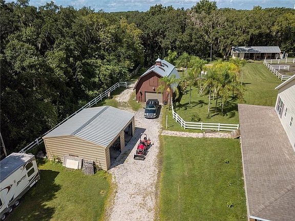Price Reduced!! COUNTRY LIVING WITH SUBURB CONVENIENCES? Starbucks just 7 min. away! This gated and fenced 8+ acres hosts a 2-story custom built home with 3 bedrooms, den/office, bonus room wired for surround sound, 2 full and 2 half baths; 5,051 sf under roof with 10 ft-wide wrap-around porch - 3/4th screened for outside comfortable living. The home features an open concept floor plan with a "chef's kitchen": two 4-burner Jenn-air ranges, microwave, very large custom granite island, 2 sinks, large double ovens, walk-in pantry. Additional features include a wood burning fireplace, skylights, high ceilings, new porcelain tile floors, two new air conditioning units, new hot water tank and Reverse Osmosis Water System. The acreage includes irrigation, well water, a 1400 sf barn easily converted to guest house or mother-in-law suite (plans and prices included), a 2 car garage, a 3 stall horse stable, finished tack room with water, electricity and air conditioner (a second office or craft room?), and fenced paddocks with extra fencing. If you're not into horses use it to store your jet skis, mower, etc. The back 6 acres are wooded including Spanish moss covered 1000 yr oaks and walking/riding trails for enjoying nature. Only a 45 minute drive to Tampa International or 30 minutes to SRQ, 17 miles to Anna Maria Island and 5 minutes to the brand new Elementary, Charter and High Schools. Space to breathe and ranch style living. Who could ask for anything more?