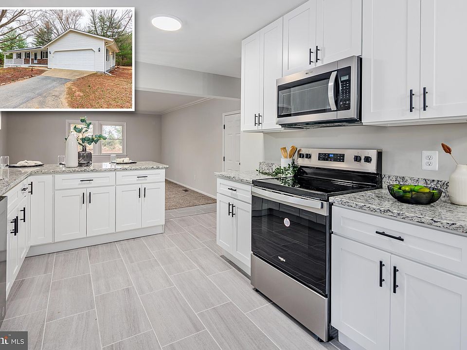 Charming Ranch-Style Home on a Spacious Corner Lot! Welcome to this beautifully updated ranch-style home offering 1,400 sq. ft. of above-grade living space and an additional 1,100 sq. ft. of finished basement space. Situated on a desirable corner lot, this home is move-in ready with fresh paint, new flooring, and numerous upgrades throughout! Step inside to find gleaming refinished hardwood floors leading into a spacious living area filled with natural light. The eat-in kitchen is a dream, featuring custom white shaker cabinetry, granite countertops, stainless steel appliances, and ceramic tile flooring. The main level boasts three generously sized bedrooms and a fully renovated bathroom with modern finishes. Downstairs, the finished basement offers a large living area, an additional bedroom, and another full bathroom, perfect for guests or extra space. Enjoy outdoor living on the expansive deck just off the kitchen, ideal for entertaining or relaxing. The two-car garage provides ample storage and convenience. With all-new flooring, fresh paint, and thoughtful upgrades throughout, this home is truly move-in ready. Don’t miss your chance—schedule a showing today!