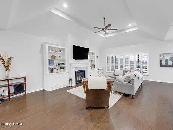 Prepare to be captivated with this open floor plan, starting with the expansive great room, featuring hardwood floors, a gas-log fireplace with architectural mantel, built-in bookshelves, and elegant plantation shutters. The adjacent office can be closed off with French doors and features updated carpet and a gorgeous Palladian window with plantation shutters, offering the ideal space for work or relaxation. The heart of the home awaits with the kitchen and dining area seamlessly connected to the great room, featuring a breakfast bar, sparkling granite countertops, stainless steel GE appliances, and ample storage space for culinary adventures and family entertaining. Retreat to the tranquility of the first-floor primary suite, offering a dimensional ceiling, new plush carpeting, and a spa-like bathroom with dual vanities, a luxurious step-in shower with added overhead rain shower, and a spacious walk-in closet. The first-floor laundry room is just steps away for your convenience, on the way to the attached 2 car garage. On the opposite side of the house are two bedrooms with a full, hall bath be-tween them. Below, discover a private oasis for guests or extended family in the secluded suite, complete with its own bedroom, full bathroom, and walk-in closet. The downstairs also offers a vast open room, perfect for creating a kid's playroom or additional entertainment space, alongside the dedicated home gym with rubberized flooring, ensuring everyone has a space to unwind and stay active without ever leaving home.