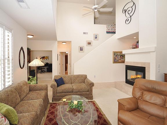 This beautiful home is perfectly maintained inside and out. Main level living features 18'' tile throughout. Enter the grand foyer & great room with high ceilings & large windows for an abundance of natural light. Enjoy the 3-sided gas fireplace from the great room or formal dining. Kitchen features granite counters, new stainless appliances throughout (5 mo.) & maple cabinets. Master bedroom is spacious and master bath includes garden tub, glass block & separate shower. Den features built in oak book shelving & window seat. Enjoy your morning coffee outside with sliding glass doors attaching kitchen & breakfast nook to beautifully landscaped covered patio. Upstairs: 2 guest bedrooms & bathroom perfect for guests. This home in impeccably cared for and maintained. A must see!