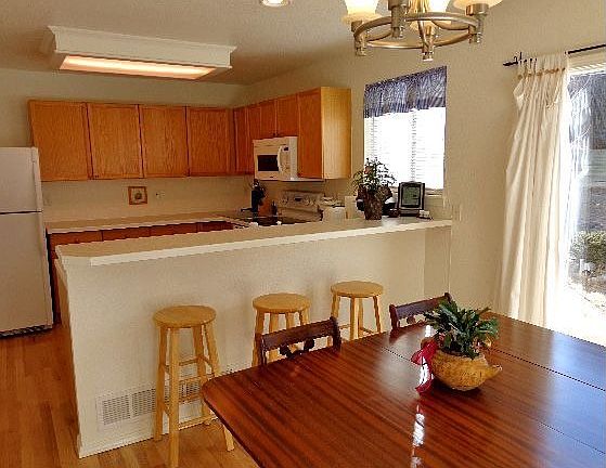 Immaculate two story on quiet street. Warm buttery walls in the living room invite cozy nights. Nicely redone hardwood floors in dining and kitchen. Large kitchen with oak cabinets, microwave. Dining area opens to good-sized rear yard that backs to open space. Elevated garden area for growing your own veggies! Large master suite with full master bath. This home is ready for you to make it yours! Close to schools and shopping.
