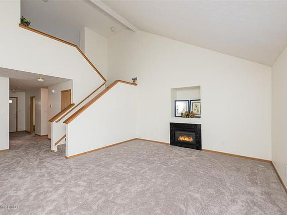 Effortless living! Let someone else mow the grass and you pull up a chair and watch the world go by on the lovely covered front porch. Once in this adorable home you will immediately notice it has been recently painted and carpeted throughout! The open great room with gas log fireplace is just awaiting those get togethers! The dining area is a good size and opens up the kitchen with an abundance of cabinetry and all newer appliances remaining. Other features of the fabulous first floor include a first floor master bedroom with a large walk in master closet and an en suite master bathroom. You will love the first floor laundry and the easily accessible half bath! The open second floor offers a loft perfect for a family room, 2 large bedrooms with double closets and another full bath and double closets in hallway. Once outside, the parking will not be of concern with the fabulous detached 2 car garage, separate parking pad and street parking. The neighborhood is beautiful and offers the most gorgeous of views. In addition the playground will be a big hit! This home is adorable and is awaiting the buyer who is looking to move right in. The 95.00 per month home owner association fees cover snow removal, lighting to entrances, landscaping and yard mowing in open areas. Start your new year with a gift to yourself! Hurry! Seller is offering a 1 Yr 2-10 Home Warranty with 100.00 deductible.