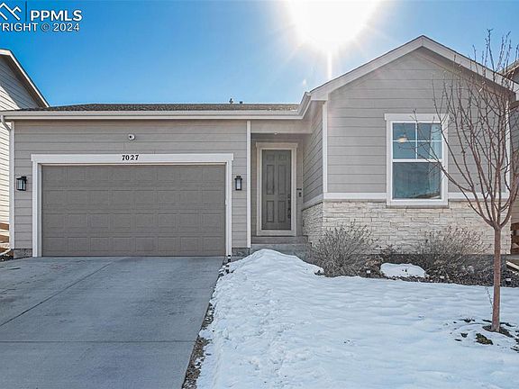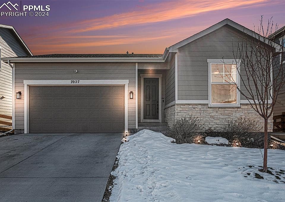 Welcome to your personal oasis in this stunning Richmond American home! This modern rancher features 9-foot ceilings, luxury vinyl plank flooring, and a bright kitchen with an oversized island, quartz countertops, and stainless steel appliances. Relax in the spacious family room or step out onto the custom rear patio with a pergola and beautifully landscaped backyard. The master suite boasts a walk-in closet and an elegant bath with an oversized shower and sliding barn door. Two additional bedrooms at the front of the home offer flexibility as guest rooms or office space, with a full bath conveniently nearby. Located in a well-maintained neighborhood close to Peterson and Schriever SFB, this home is just minutes from Powers Corridor shopping, dining, and entertainment. Schedule your showing today!