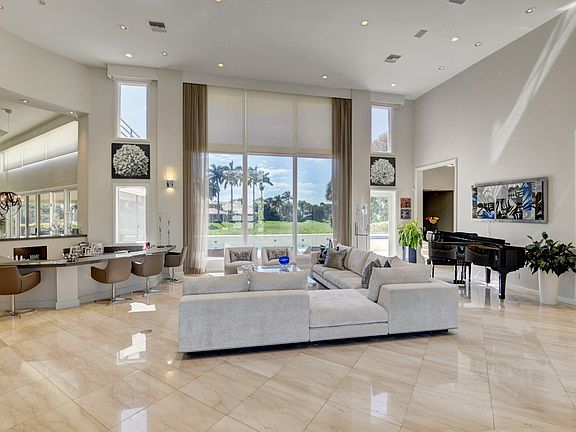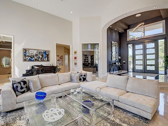 Located on a rarely available DOUBLE LOT in St. Andrews CC, this 7-bedroom + office home is NEWLY RENOVATED and move-in ready. The interior is light, bright, and open, with tons of natural light flooding in through floor-to-ceiling windows. The kitchen has been outfitted with all new appliances and cabinets. Ground-level master suite with automated blackout shades, separate sitting area, and his & her walk-in closets. 3 additional guest bedrooms + office on the main floor, and 3 guest bedrooms upstairs. Outside is an oversized backyard with screened and covered patio areas, built-in BBQ, and 52' resort-style pool with spa, perfect for enjoying the sprawling lake & golf views and beautiful sunsets.