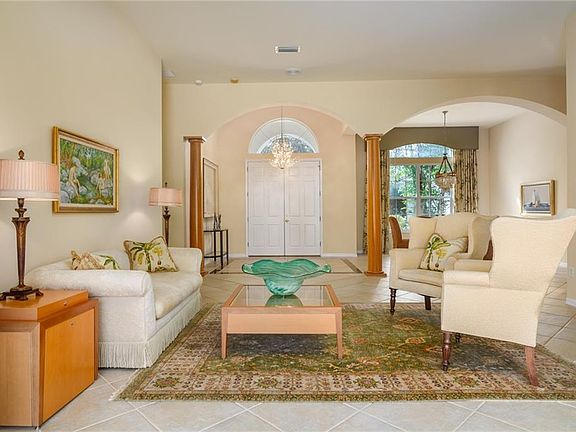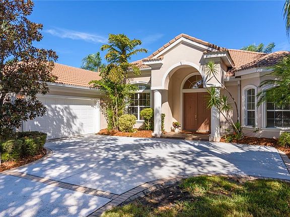 Private tropical oasis with stunning water views, Located in the charming Stanhope Gate neighborhood. A custom retreat built by Todd Johnson. Indoor/Outdoor living at it's best with Great Room, Living Room and Den opening out to a large Lanai with spectacular pool and water views. Open-Concept Floor Plan; each Bedroom has on-suite bathroom. One bathroom has direct access to the pool. Luxurious entry with beautiful custom tile/marble inlay flooring and sparkling crystal chandelier. Chef's Kitchen with rich wood cabinetry, granite counter-tops and breakfast bar. Fabulous pool and lake views can be enjoyed from your breakfast nook complete with an aquarium window. Breakfast in bed in your spacious master suite while enjoying pool /lake views. Luxurious Master Bath with separate his/her sinks, walk-in shower and large soaking tub. Over-sized two-car Garage with private golf cart entry. Start enjoying your Perfect Florida Lifestyle in this Luxurious Retreat and Awarding Winning University Park which includes: 27 Hole, 4 Star Rated Golf Course, Tennis, Fitness and a Lively Social Club.