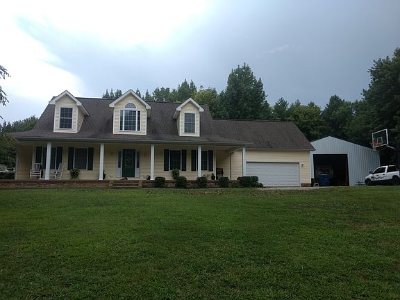 Country living at it's best. This one owner, custom built home is nestled on a private setting with 4.08 acres on Evansville's west side. The home features over 2700 sq.ft with 3 bedrooms, 2.5 baths, Bonus room plus an unfinished walk-out basement. Enjoy beautiful sunsets from the covered front porch of this home. The Entry with vaulted ceiling opens to the Great room with 16' ceiling, stacked stone wood burning fireplace and a ceiling fan. There is plenty of natural light with one wall of windows and a French door leading to the back yard that backs up to woods. The Great room opens to the large Kitchen highlighted with plenty of custom Amish maple cabinets, an eating bar, pendant lights and lots of counter space. The Kitchen eating area with bay window allows for nature to be at the table through-out the year. A formal Dining room is located off of the Kitchen for larger gatherings. Spacious Master BR with walk-in closet with built-in drawers and shelves. The adjoining bath features a walk-in tiled shower and double custom vanity with granite top. Front and back stairs lead to the 2nd level which includes 2 large bedrooms each with a ceiling fan and a double closet, a full bath with granite vanity top, large Bonus Room and walk-in attic storage. Main level laundry with counter and cabinet space is conveniently located between the kitchen and the attached 2.5 car garage. Lots of potential in the unfinished walk-out basement with over 1,000 sq.ft. Plumbing is roughed in for a full bath. 40 x 60 pole barn is ideal for storing RV, boats, 4 wheelers etc. Extras include central vac system, hand scraped wood flooring in the Entry, Great room, Kitchen and formal Dining room, 2 HVAC units, recessed lighting, 2 - 200 amp panels, Cat 5 wiring to every room and switched outlets in the exterior eaves. Built by Reinbrecht Homes. Great private location but conveniently located to shopping and restaurants.