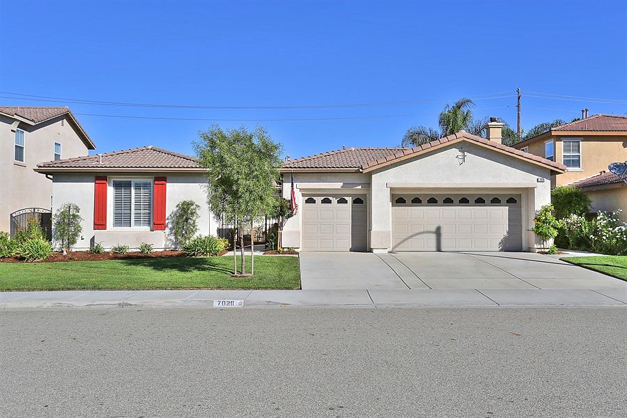 Priced to sell for this beautiful single-story home in the desirable City of Eastvale. This home is located in an established neighborhood. It has a secured & gated front courtyard. Home has an open & spacious floor plan with high ceilings. Three bedrooms plus a den or office with an attached Murphy bed with queen size mattress, can easily be converted into a 4th bedroom. Plantation shutters throughout. Nice tile floors in the living room, formal dining area, family room, kitchen, bathrooms & hallway. Kitchen has an island, tile countertop and separate breakfast area. Separate laundry room with cabinets. Cozy fireplace in family room with built-in media niche. Custom interior paint. Large master bedroom & walk in closet. Master bath has tub & separate shower, his and hers sink. Master bedroom has thermal drapes and UV tinted sliding doors; opens to a nice backyard with a sparkling pool with pool sweeper, barbecue grill island, trees & plants on a drip system. A truly relaxing place to entertain! It has a secured concrete dog run on the side of the house. Freshly painted fence which was painted, stained & sealed. Dual air-conditioning system.Whole house fan system in attic. Ceiling fans in all the rooms. Close to park,schools,adult soccer, Eastvale Community Center