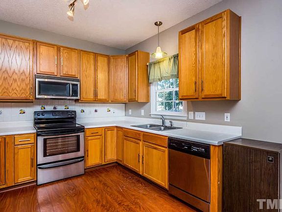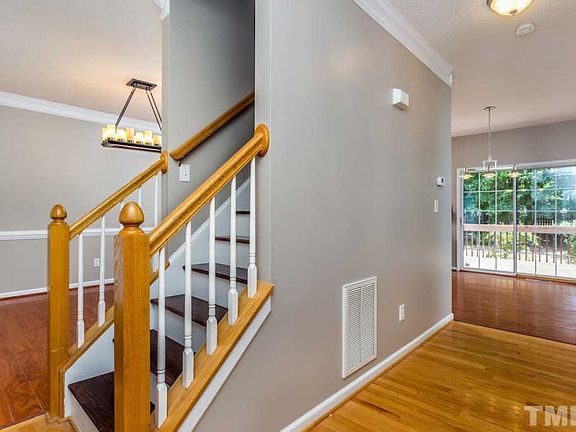 Adorable 3 bedroom 2.5 bath home with large fenced in private back yard in Woodlawn! Formal dining room and family room with wood floors. Kitchen opens to large family room warmed by gas log fireplace. Large deck for entertaining overlooks big fenced backyard. Master suite has private bathroom, walk in closet. Bonus room conveniently located on the second floor. New Carpet and fresh paint! Great North Raleigh neighborhood!