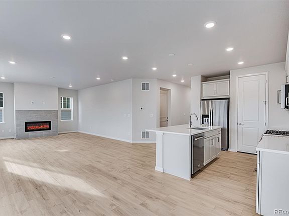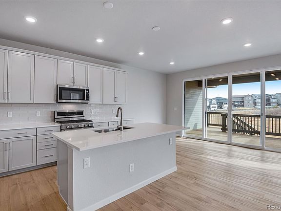 Situated in a prime location nestled against open space, this home offers a premier setting. Take advantage of the breathtaking backdrop from the covered deck. Inside, indulge in the high-end contemporary design featuring quartz countertops, warm light grey cabinetry, KitchenAid stainless steel appliances, a fireplace, and sleek wide plank luxury vinyl flooring in a natural wood color throughout the main level. Enjoy ample space to relax or entertain with a finished walkout basement.