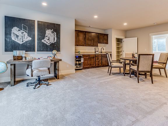 This beautifully upgraded Lewiston, a 2019 Parade home, features a two-story ceiling which stretches from the foyer to the living room. An upper-level balcony, which is visible from the lower level, offers a midway focal point.The kitchen is adjacent to the lofted living space and the dining room at the rear of the plan. It includes a large island, walk-in pantry, and wrap around counters. The master suite offers a vaulted bedroom, four piece master bath, and a spacious closet. Near the foyer is the laundry room, half-bath, and office or guest bedroom. On the upper level are two additional guest bedrooms and a shared bath with dual vanities.