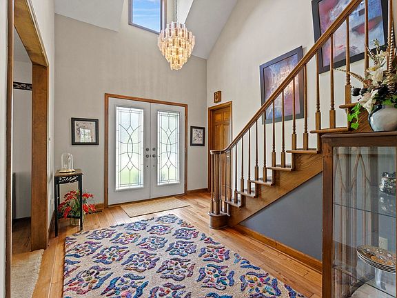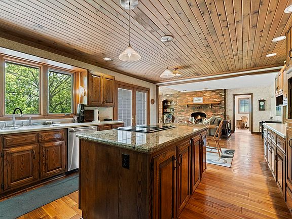 Country living with city taste. There are many wonderful features throughout the home. Two story foyer with an open railing. Formal living and dining rooms. Large kitchen and nook that would amaze most cooks with lots of cabinets. Family room with a huge full wall bay window and gas fireplace. Large mud room off garage that has several closets and 1 of the 4 full baths. Owners’ suite has double closets and a den or sitting room, and a completely updated bath with zero threshold ceramic tiled shower. Upstairs are 3 nice sized bedrooms and a large den or family room. The walk-out basement boasts a custom bar and cabinets, stunning living area with the second fireplace, large laundry room, lots of places to store your wine; a sauna with a full bath, your own home spa; and a workshop area. Two separate French doors open to a very large concrete patio with a hot tub. On the main floor are 3 separate doors that open to the trex deck. Abundance of natural sunlight and many different types of ceilings: cathedrals, vaults, wood . Heat pump with secondary heat source as propane. This home is situated on 2.3 acres at the very end of a cul-de-sac. Why build?