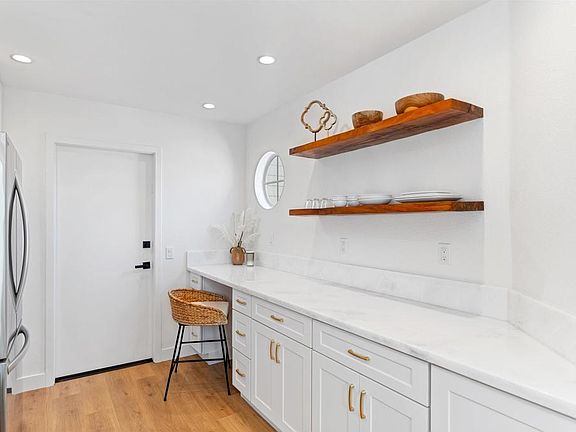 Introducing a beautifully renovated, single level, 3-bedroom, 2-bathroom home situated in the gated community of Sea Cliff. Meticulously crafted with the discerning high-end buyer in mind, this residence has undergone an extensive transformation inside and out, leaving no detail overlooked. Step into a realm of tranquility as you enter the quaint front patio with a drought tolerant landscape. The home features an inviting bright and open floor plan, soaring ceilings, quartzite countertops in the kitchen and bathrooms, new flooring, custom cabinets, and recessed lighting with designer touches exuding sophistication and elegance throughout. The tile showers and bathroom design with intricate detail, serve as a testament to the meticulous attention paid to every aspect of this home. The low-maintenance side yard has been transformed into a private oasis, featuring newly installed pavers and artificial turf, offering a blend of elegance and convenience. While the back patio off master offers serenity with views that overlook a vast greenbelt. Nestled within a friendly community, you can enjoy the community pool, hot tub, tennis courts, club house, ponds and paved walking trails throughout. Indulge in the epitome of simple, yet luxurious living in this remarkable sought after location of Sea Cliff.