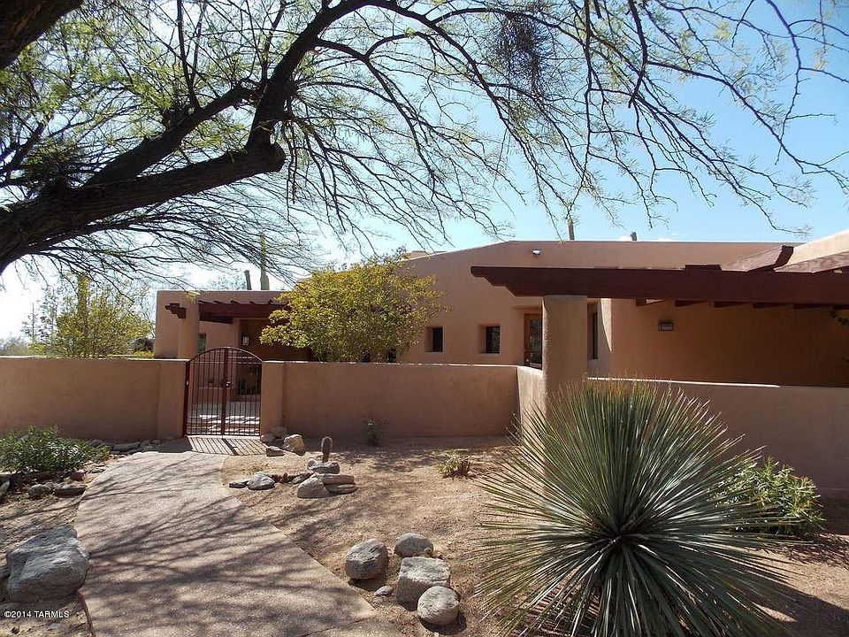 For more information on this property, contact the Listing Agent, Nancy Fung Martin at (520) 906-2593 or nancy@nancysellstucson.com. Sellers will look at all offers!! Bright and open contemporary designed, 4 bedrooms, 3 baths in the Catalina Foothills. With stained concrete floors, high ceilings, skylights, living and family rooms, formal dining, 2 gas fireplaces, 3 rear covered patios with mountain views; great for entertaining. An open kitchen with stainless appliances, granite counters, Bosch dishwasher and sub-zero refrigerator. Enjoy outdoor dining with a 4th covered patio off the kitchen. Spacious master bedroom with patio sliding door, master bath with jacuzzi tub, walk-in shower with dual shower heads, and dual sinks. 3 car garage. No neighbors behind. Custom Home designed and built by Bil Taylor. This house was designed to showcase the magnificent mountain views & the secluded quiet desert. District 16 schools.