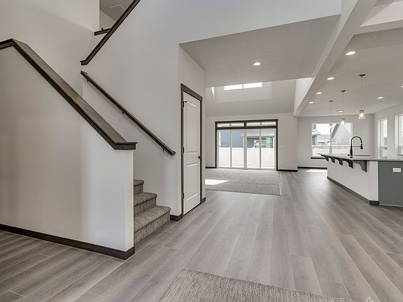 An NIBCA award winning home, the Gallatin features a two-story ceiling which stretches from the foyer to the living room. An upper-level balcony is visible from the lower level and offers a midway focal point for the space.Adjacent to the vaulted living room are formal and informal dining areas which flank the kitchen. The kitchen layout is open and contains a large island with sink and closet pantry. The master suite has a shower, dual-sink vanity with make-up desk, and walk-in closet. On the upper level is a bathroom and two bedrooms which are located on opposite sides of the homefor privacy.The Gallatin's connection of space and plan configuration make it one of Architerra's most popular homes.