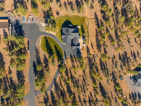 Rare opportunity to own a piece of tranquility. Almost new home, gorgeous top quality finishes w/spacious rooms & high ceilings. Incredible vaulted ceiling great room w/expansive wall of windows & beams, bring the outside IN. Perfect home for gathering in gracious space. High end finishes for cabinetry, doors, fixtures, counter tops, lighting & flooring. Natural finished engineered hardwood throughout living spaces. Kitchen w/quartz counters, huge kitchen island, Wolfe range & Jenn-Air frig. White cabinetry w/lots of counter space, PLUS large pantry. 3 primary suites PLUS office, excellent floorplan for many lifestyles. Private primary w/5 piece bath & huge walk in closet. Vaulted, covered huge patio off great room. Fenced, level, timed irrigation backyard backing to the forest, very private. Plenty of room to run & play. Peaceful location on 2.27 acres that backs up to the BLM. Neighborhood of high quality homes, CCR's but no HOA. Paved roads all the way home. Love where you live!