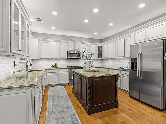 - Features: Breakfast Room, Cabinets White, Kitchen Island, Pantry, Stone Counters, View to Family Room