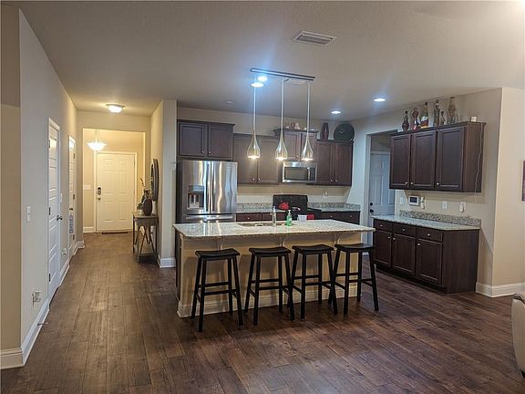 Introducing the Davenport A, originally constructed by DR Horton, a quintessential blend of modern design and spacious living. Boasting an expansive 2323 square footage open floor plan, this stylish home offers comfort and functionality at every turn. The main level welcomes you with a luxurious primary suite, providing a serene retreat from the hustle and bustle of daily life. Upstairs, discover three additional bedrooms, a full bath, and a versatile bonus room, perfect for accommodating guests or creating a cozy den. The heart of the home lies in its inviting kitchen, complete with an extended bar and seamless flow into the family room, ideal for entertaining or enjoying casual family gatherings. Adjacent, a dedicated dining area offers a refined space for formal meals or casual brunches. Situated in close proximity to the Magnolia Grove Golf Course, the Davenport A embraces its natural surroundings, with trees dotting the green space at the back of the property, providing a picturesque backdrop for outdoor enjoyment. While a fence is not included, the serene ambiance and lush surroundings ensure privacy and tranquility, making this residence a haven for modern living.