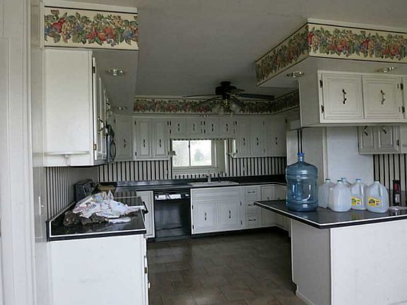 5 ACRES County east of town is next to impossible to find. This farm home is located on a dead end road. Remodeled kitchen. Some replacement windows. The partially finished basement has loads of possibilities. Five out buildings including a barn that has a workshop, concrete floor and electric. Several grain bins and other out buildings will serve the new owners well. Home has had some updates. Little is known about the specifics of the property as it is bank owned and is being sold AS IS.