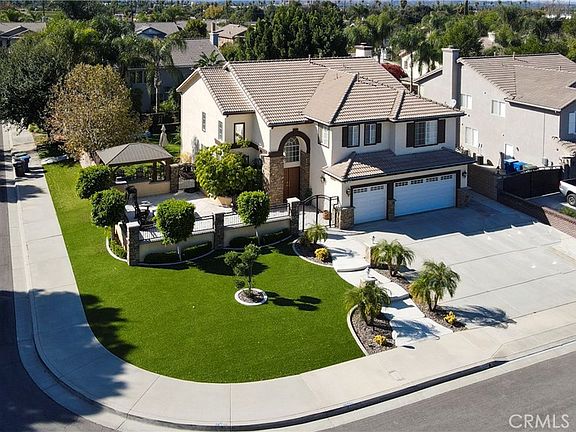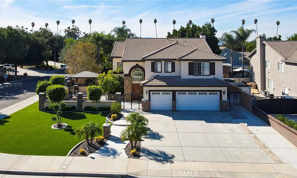 Welcome Home to this beautiful VAN DALE HOME, this stunning 4-bedroom home with Loft has a phenomenal Open floor plan that screams Luxury. This home also accommodates 3 remodeled bathrooms with custom designs. This exceptionally gorgeous home has all the Bells & Whistles throughout the property & is in move-in condition. This home has been fabulously remodeled & has genuine Pride of Ownership throughout. Upon entering this gorgeous corner lot, the front yard has a huge, enclosed patio with a custom firepit, B-B-Q & patio to host gatherings, if desired. The front yard has meticulous designs starting from the walkway, accompanied by the welcoming palm trees & rod iron entry gate. The double-door entrance welcomes you into this high vaulted ceiling that allows exceptional natural light to brighten the home during the day. The travertine floors throughout the 1st floor create an excellent layout for those looking for prestige. The plantation shutters are beautifully designed with custom installation. Natural lighting beams through the double-paned windows, and the entire space has been newly painted with crown molding. The kitchen has been recently remodeled with a walk-in glass pantry & custom-designed quartz countertop. This open kitchen has an entertainer’s island with custom-built cabinets, a backsplash, and a chandelier. The downstairs has 1 bedroom & ¾ bath, along with a laundry room. The upstairs master boasts a separate shower and tub with 2 closets for additional space. The upstairs also has 2 additional bedrooms along with a HUGE loft that can be used as an extra bedroom as a 5th bedroom, office, or den. As you go outside, you’ll find a beautiful backyard featuring turf grass for an eco-friendly environment. The covered patio and low-maintenance yard make this home a delight. This home also has solar panels that will save you on your electricity bill and are paid off free & clear.
