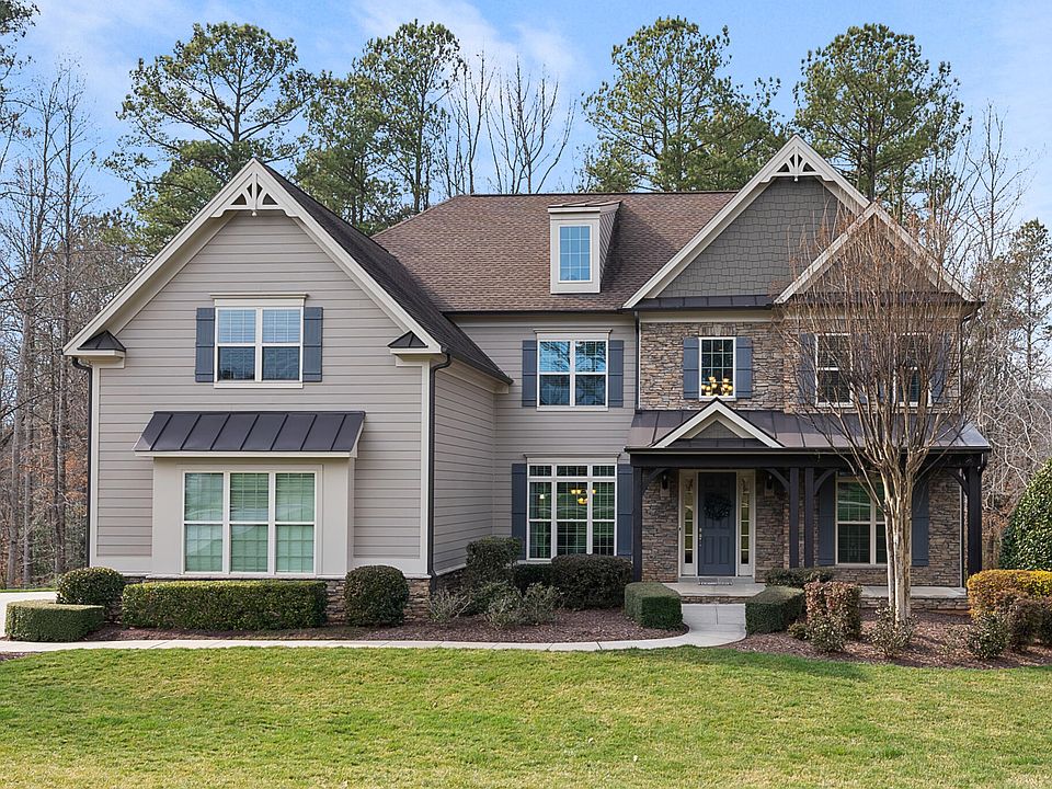 Experience opulent living at its finest in this custom luxury estate in Hasentree. This home exudes grandeur at every turn. Upon entry, the grand staircase and open layout set the stage for elegant entertaining. The two-story great room captivates with floor to ceiling windows and soaring stone fireplace, complemented by a formal dining room with trey ceiling and a culinary enthusiast's kitchen that would delight any chef. Kitchen has wonderful cabinet space, counter top work area and is open to the great room. Downstairs office, laundry and flex space finish off main floor, the upper floor offers a divine owner's retreat with sitting room, massive walk in closets, spacious bath features dual vanities, separate tub and huge shower, 3 additional large bedrooms & 2 baths, the lower level boasts a media room, impressive wine room, and potential in-law suite, incredible storage while providing ample space for leisure and relaxation. A four-car garage, private outdoor living space overlooking your almost acre lot. Resort class amenities are unparalleled in the area from golf, tennis, theme park style pool, fitness & activity center, clubhouse and dining. This home and community offers it all.