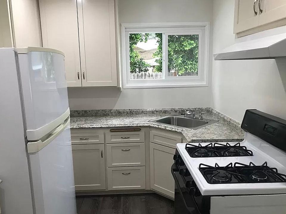 Welcome to this gorgeous light and bright upgraded three bedroom home features new laminate flooring throughout, new dual paned windows, a separate living room and family room, ceiling fan, two newly updated bathrooms, fresh paint, and recessed lighting. The updated kitchen has faux granite countertops, newly refaced cabinetry, and includes a refrigerator. Washer and Dryer included. Enjoy the outdoors in the front low maintenance drought tolerant yard and private backyard with patio overhang. Expansive driveway (no garage). Clean and move-in ready. Make it your home today!
