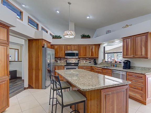 • Interior Features: Cathedral Ceiling(s), Ceiling Fans(s), High Ceiling(s), Master Bedroom Downstairs, Split Bedroom, Central Vaccum, Walk-In Closet(s), Window Treatments, Open Floorplan, Solid Wood Cabinets, Eating Space In Kitchen, Stone Counters