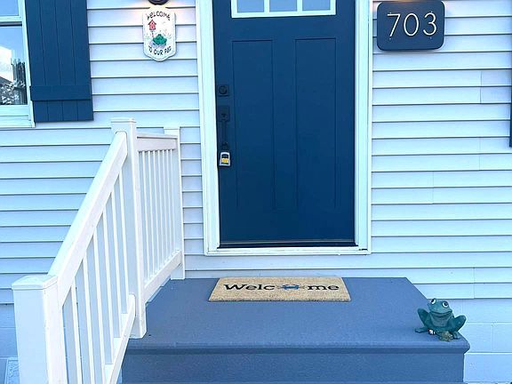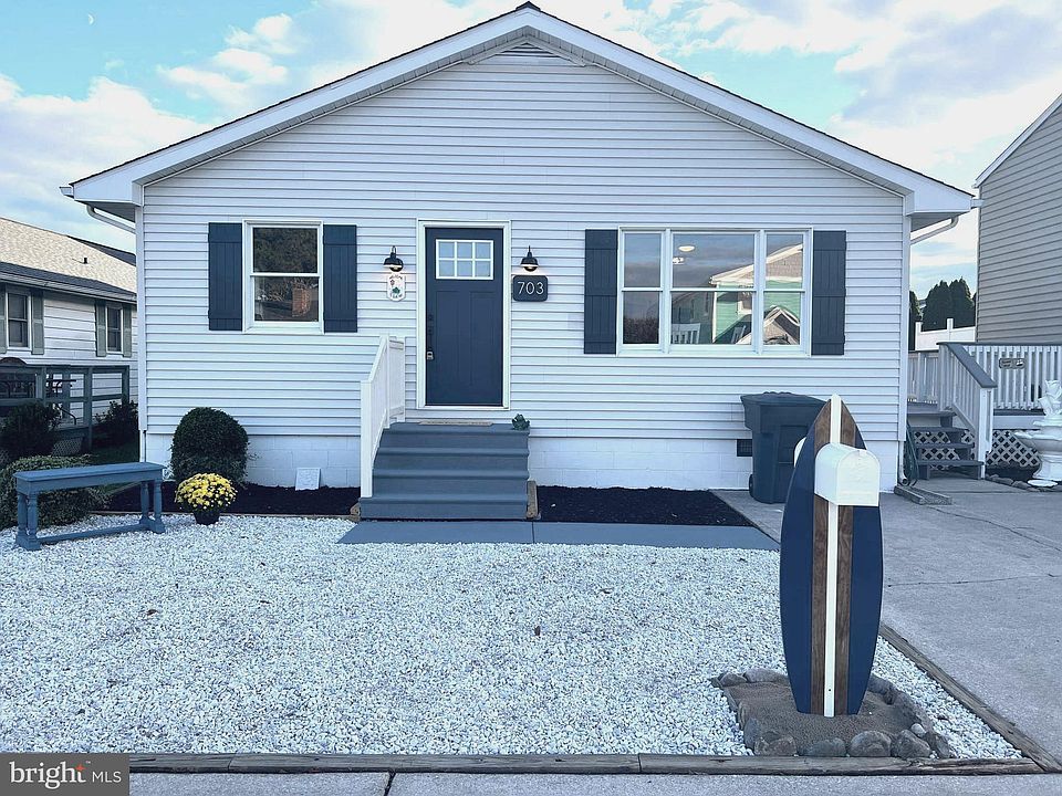 Beautiful (Turn Key) Single family home located on a lovely street in the sought out community of Caine Woods. Everything conveys in this bright and cozy 3 bedroom 2 full baths beach home. Prime location is only blocks from the beach and across the street to the Bay. No HOA or fees! Just Renovated! New appliances, fixtures, shutters, doors, fresh paint throughout. 3 generous size bedrooms. Primary Bedroom has attached full bath. Large deck off the kitchen. Storage shed in the back. The fountain works and provides a very tranquil setting. This is a must see!