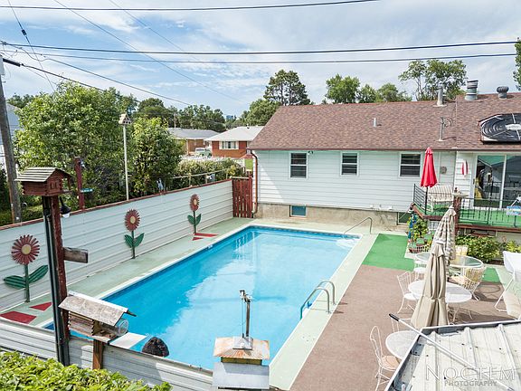 Heated in ground POOL!! Take a look at this great 5 bedroom home. The main floor features 3 bedrooms, open kitchen dining room area that leads to the back deck, full bathroom with a laundry chute, and living room with lots of natural light and a gas fireplace. The basement features a spacious family room, 2 non conforming bedrooms, laundry, and 3/4 bathroom. The solar heated pool is surrounded by concrete and has a pool shed. Additional features include steel siding, underground sprinklers, central vacuum, newer furnace, and double detached garage. Call an agent today.