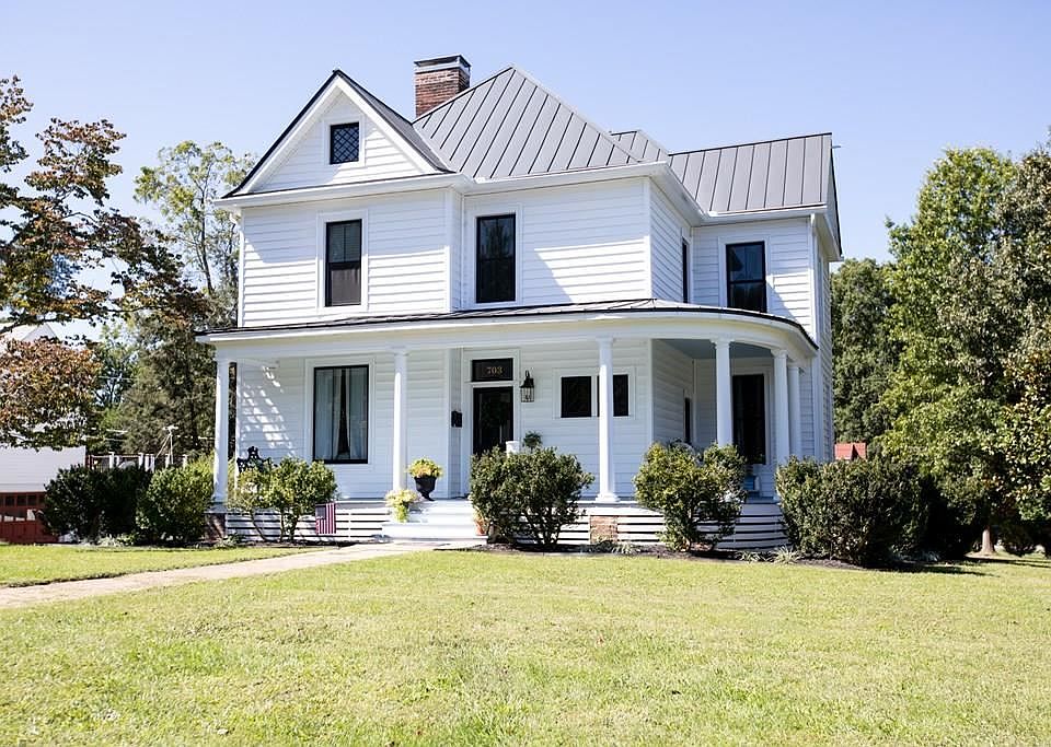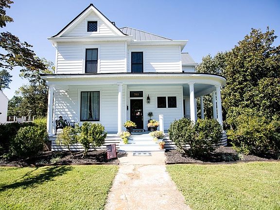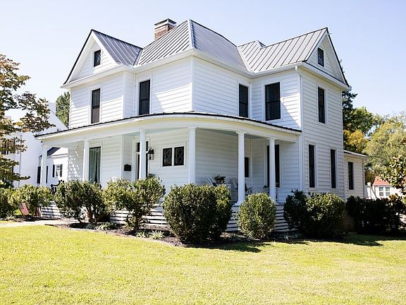 Amazing colonial home built in 1940 with timeless design, appeal, and quality. It was painstakingly redone in 2019 with attention to every detail. You are greeted with a wide front porch, come inside and try on the lovely foyer to greet your guests. The Main level has a formal living and dining room. The fireplaces, tall ceilings, and designer appeal of these formal spaces will entice you to start entertaining again. Come on back and check out the kitchen which will be the heart of your home with a center island, top of the line appliances, wall of windows overlooking the rear deck, glass-front cabinets showing off the decorative pieces, butlers pantry and more. Master bedroom on the main level with on-suite bath, and a designer walk-in closet. Upper level has one bedroom with bath, 2 additional bedrooms, full bath and an office. The home has been redone with insulated siding, metal roof, new heating and cooling--dual-zone, new windows with farmhouse black exterior, new baths, new kitchen and more. The floors and fireplaces are original and have been redone--gorgeous. Move-in and enjoy all that Farmville has to offer--it is the perfect town to retreat to during and after Covid.