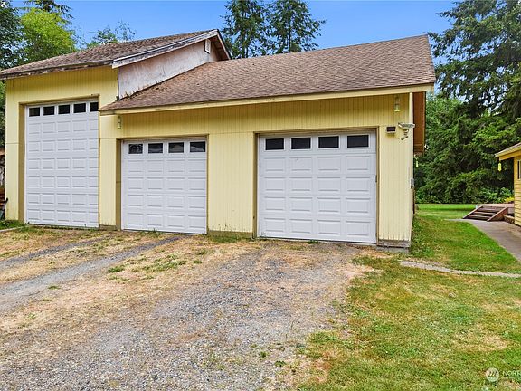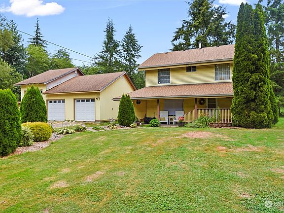 Shy 6 acrs (2 tax parcels) on Portage Creek in the desireable Lakewood neighborhood. 2 bedroom home with oversized 32x40 garage with RV storage. 22 ft Cathedral ceiling give a feeling of openess and the windows bring in natural light. Enjoy NW days toasty warm while you gaze upon the peaceful views of th Silvana fields nad mountains. Mature landscaping includes set paver patio, parking area and firepit. Envite guests or have events in the 16x40 pergula and gazebo. Located on a dead end road and set back for peace and serenity of nature instead of traffic. Produccing Malus domestica produces 3 types of apples in 1 tree. Conveniently located close to close to I-5 and just minutes from the outlet mall and 2 casinos.